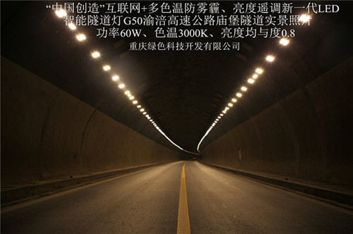 G50重慶渝涪高速公路黃草山、同心寨、廟堡隧道采用“中國創(chuàng)造”互聯(lián)網(wǎng)+多色溫防霧霾、亮度遙調(diào)新一代LED隧道燈及遠程智能控制系統(tǒng)實施綠色照明節(jié)能改造全面竣工簡訊