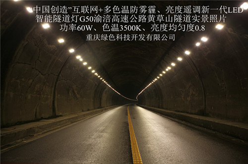 今年5月份,重慶渝涪高速公路有限公司與重慶綠色科技開發(fā)有限公司就G50滬渝高速黃草山、同心寨、廟堡隧道LED綠色照明節(jié)能改造項目,以合同能源管理模式簽訂了合同。該項目使用“中國創(chuàng)造”互聯(lián)網(wǎng)+多色溫防霧霾、亮度遙調(diào)新一代LED智能隧道燈及遠程智能控制系統(tǒng),對原隧道3629盞鈉燈實施綠色照明節(jié)能改造。三個隧道的六個隧道單元,總長度為5.5公里,雙邊布燈11公里,是目前國內(nèi)外隧道照明中使用該產(chǎn)品里程最長、數(shù)量最多的綠色照明工程。該工程現(xiàn)已全面竣工并投入使用。