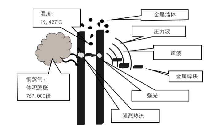 圖1-1銅排之間產生的電弧及其效應